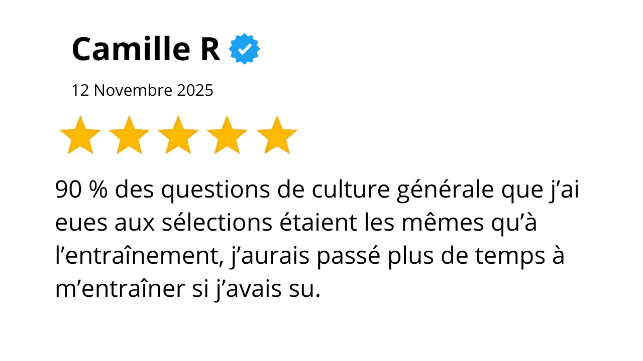 - Nos QCM d’entraînement contenant les questions qui tombent le plus souvent lors des sélections